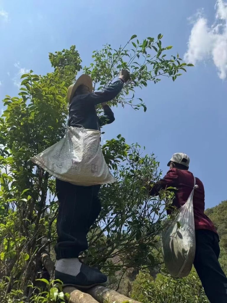Picking: When picking raw materials of Pu ‘er tea, spring tea is the main one, with two leaves or three leaves with one bud.