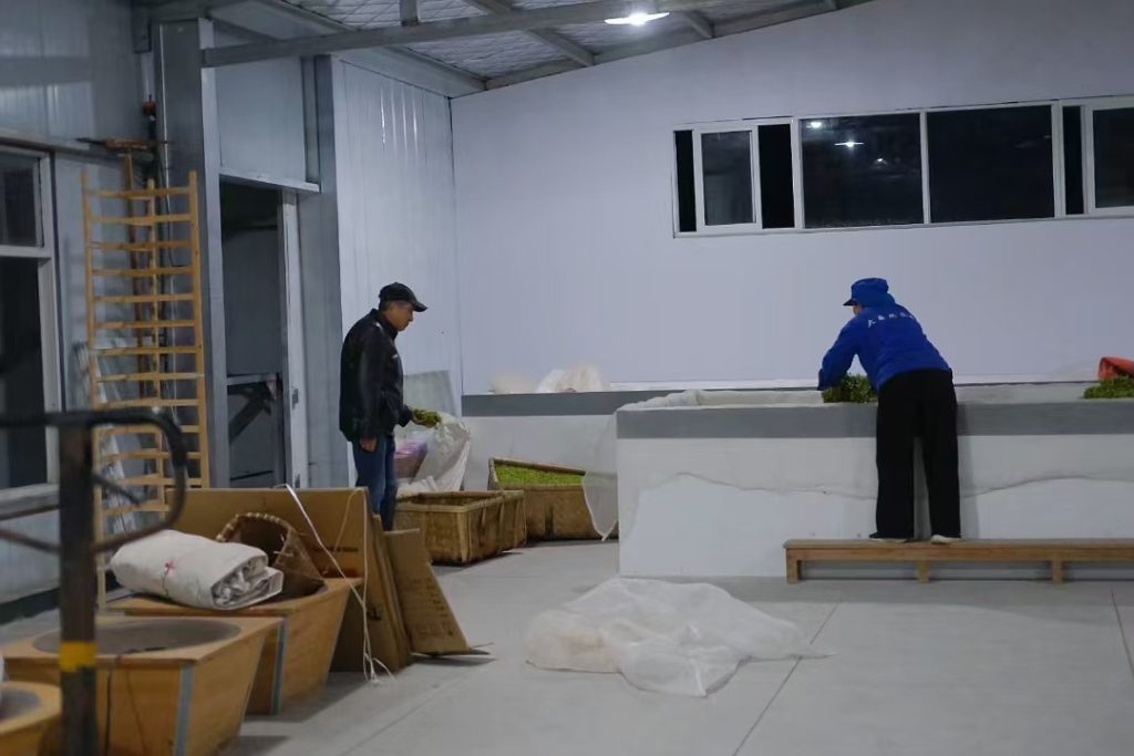 The third step is foot baking. Use brocade cushion to bake while pressing to fix the shape of tea. After five to six times of turning and baking, about 90% of them are dried, and then dried and spread.